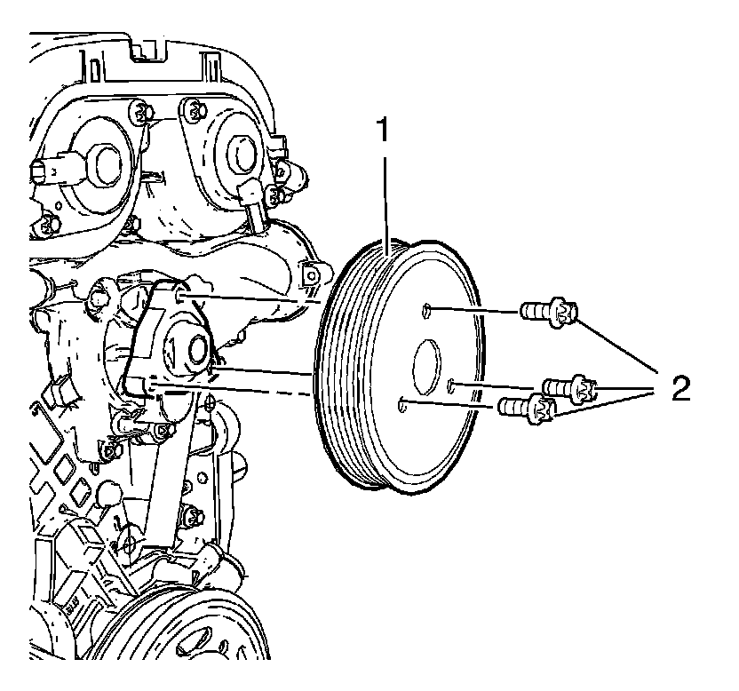 2. Install the 3 water pump pulley bolts (2).