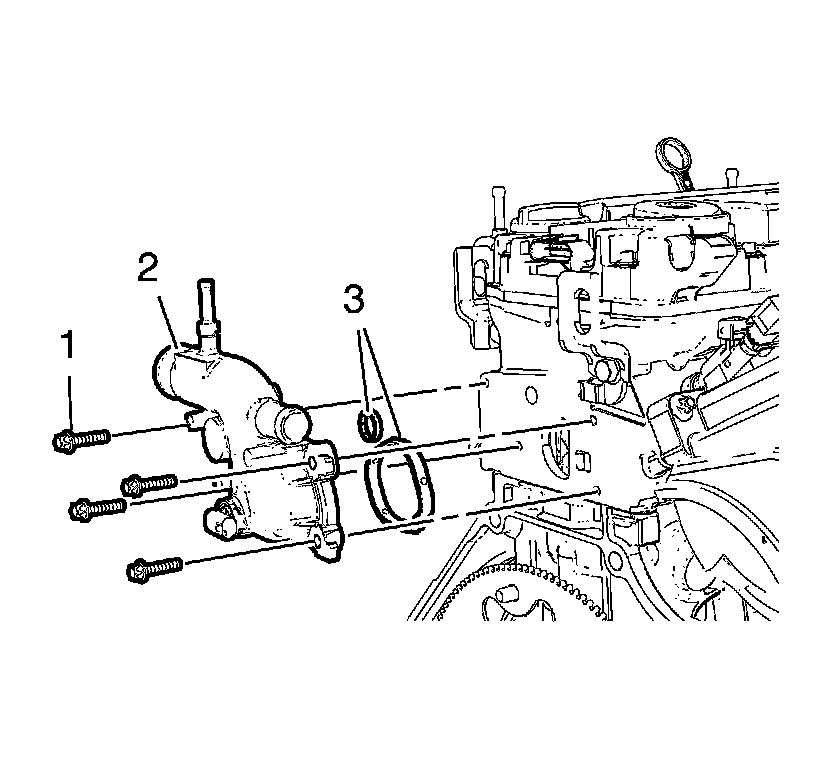 Remove the 4 water outlet bolts (1).