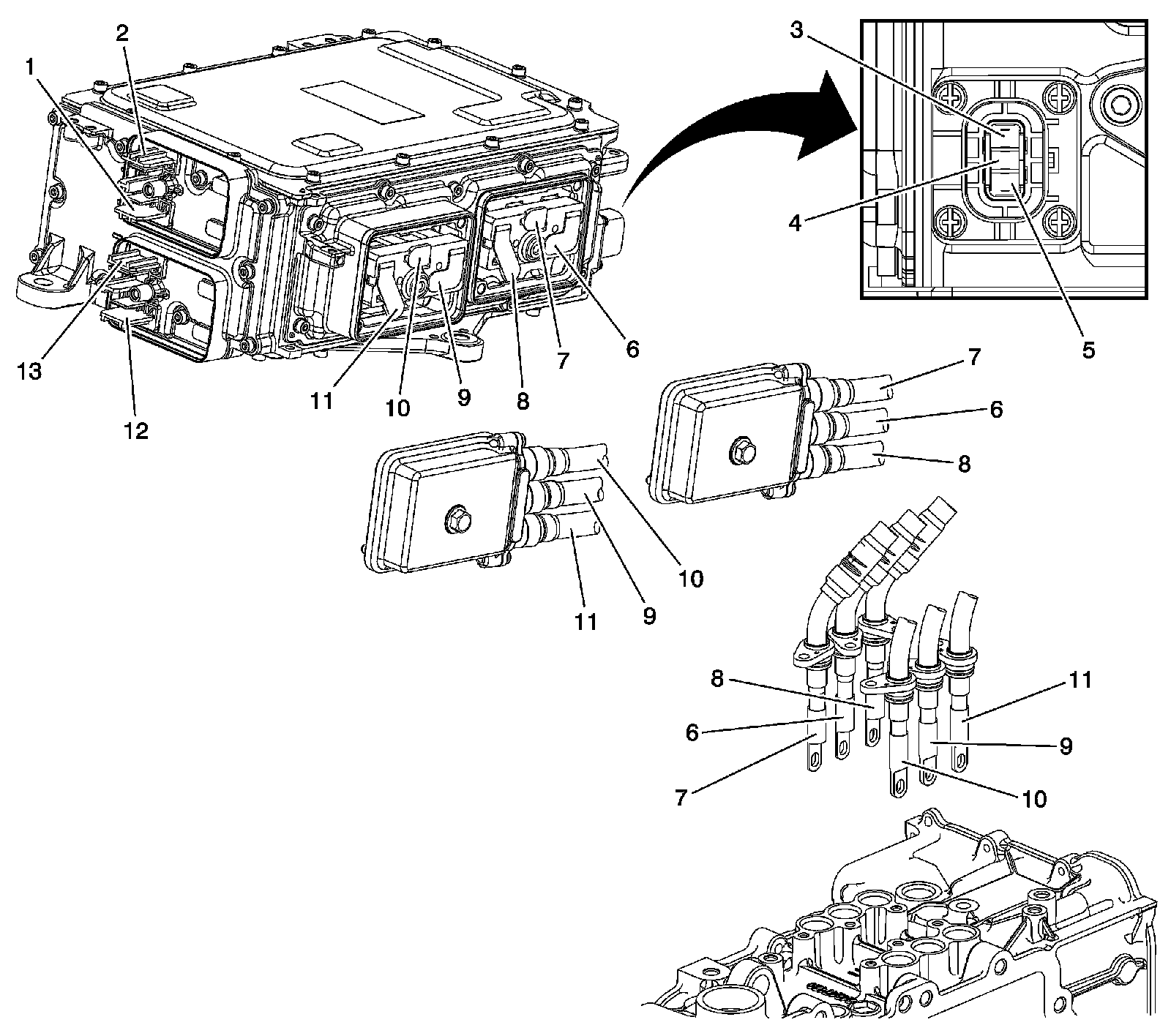 8 - Drive Motor Power Inverter Module 3 Phase Cable Assembly - B