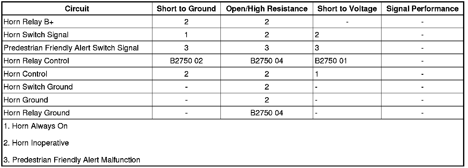 • If the P12 horns do not perform as specified, refer to Predestrian Friendly Alert Switch Malfunction.