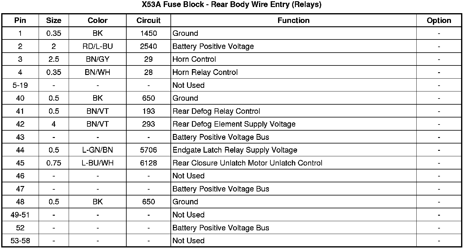 X53A Fuse Block - Rear Body Wire Entry (Relays)