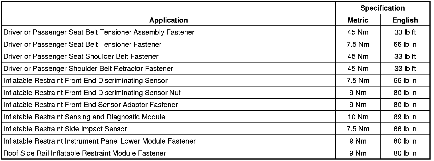 Fastener Tightening Specifications