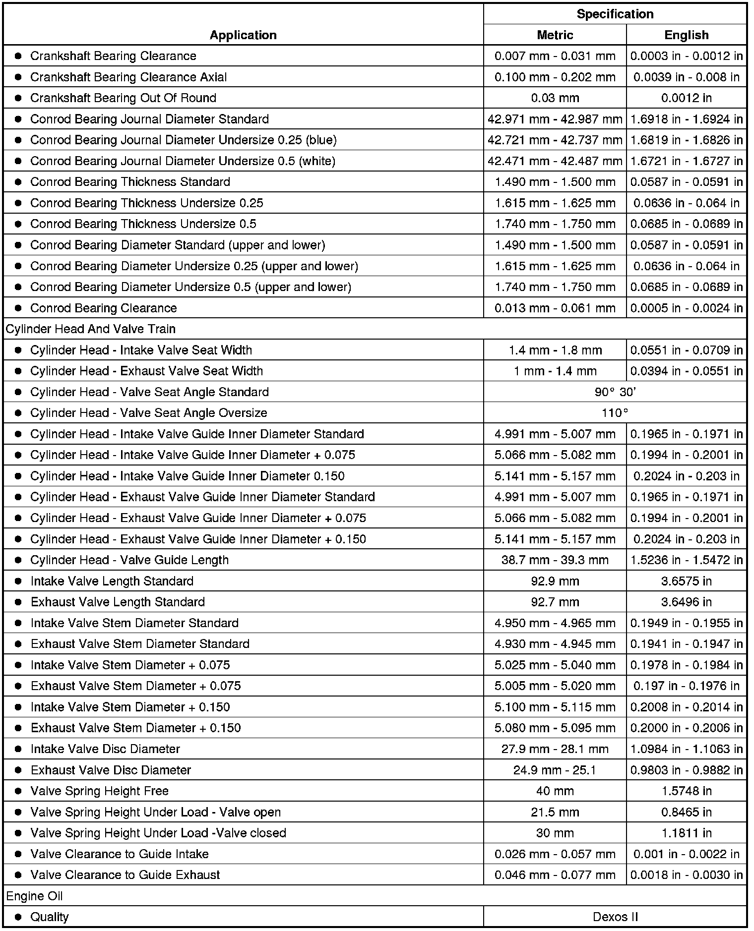Engine Mechanical Specifications
