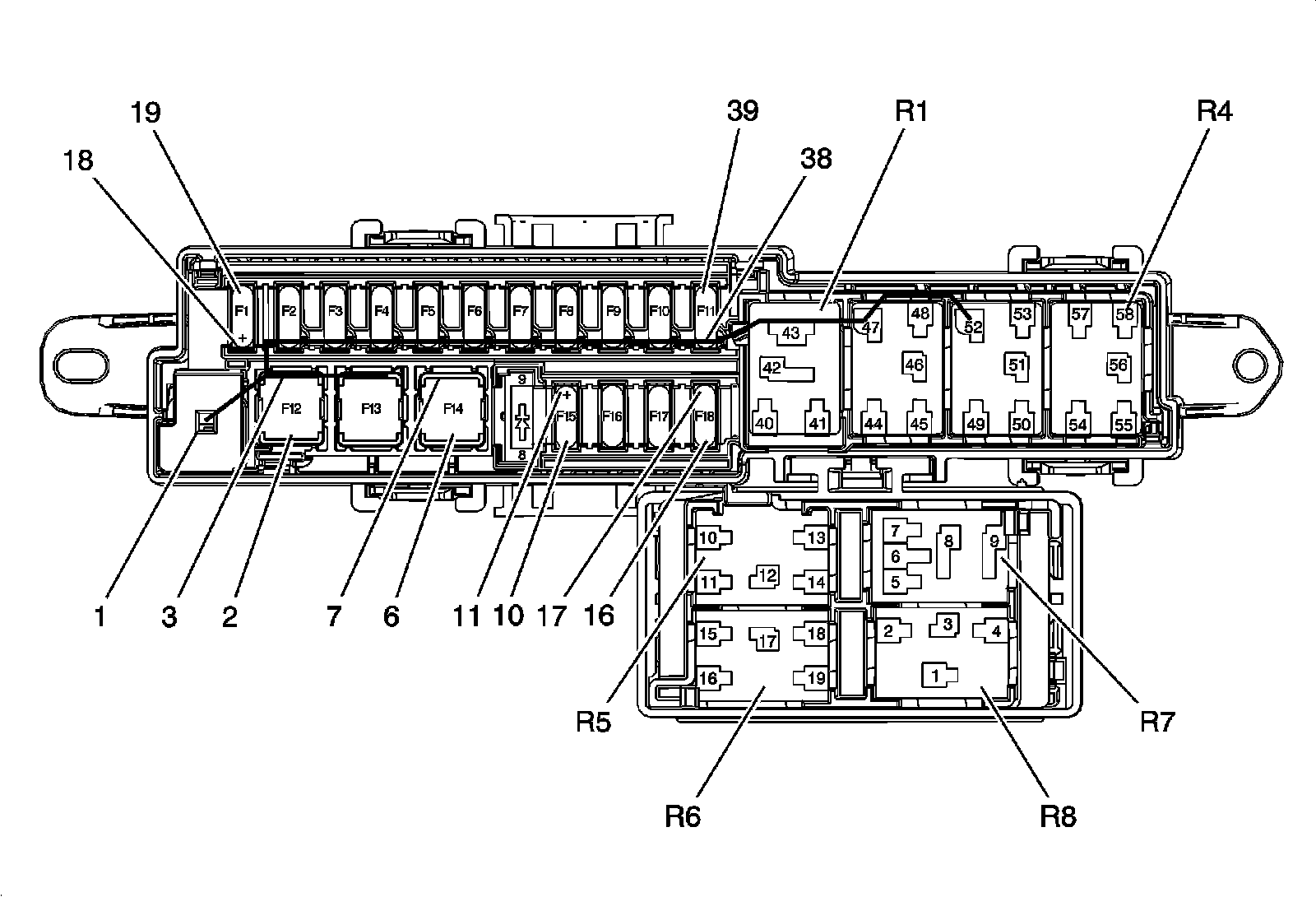 X53A Fuse Block - Rear Body Top View