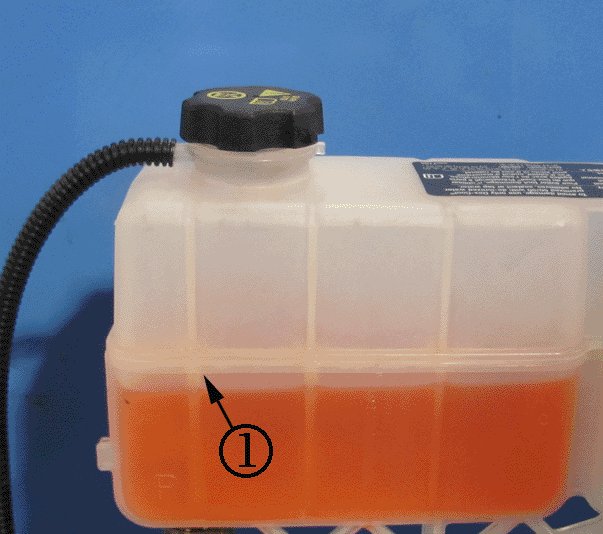 - If the drive motor cooling system reservoir is NOT below the seam of the reservoir (1), proceed to the service repairs in this bulletin.