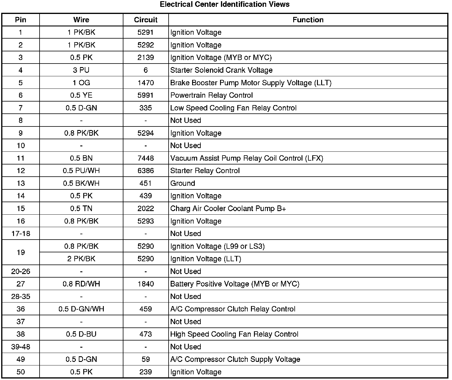 Electrical Center Identification Views