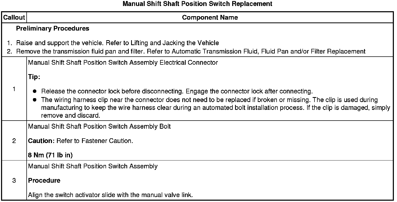 Manual Shift Shaft Position Switch Replacement