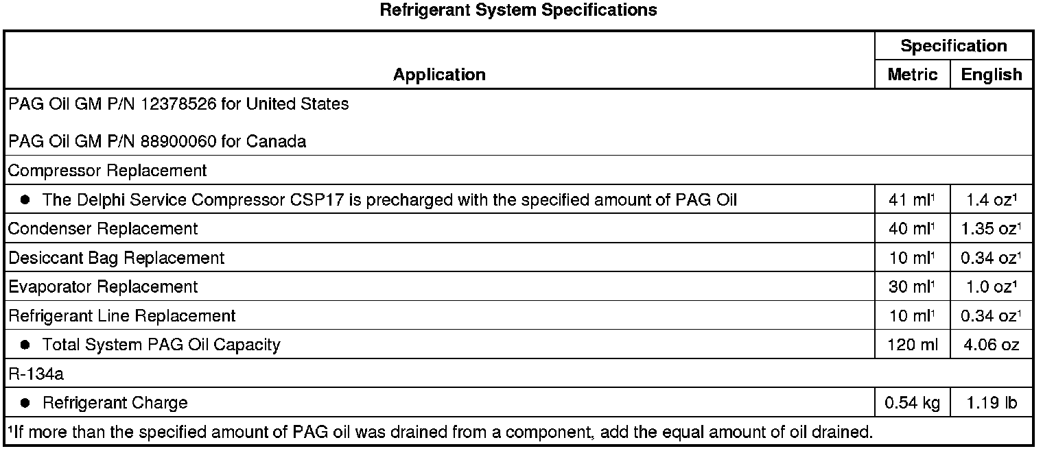 Refrigerant System Specifications