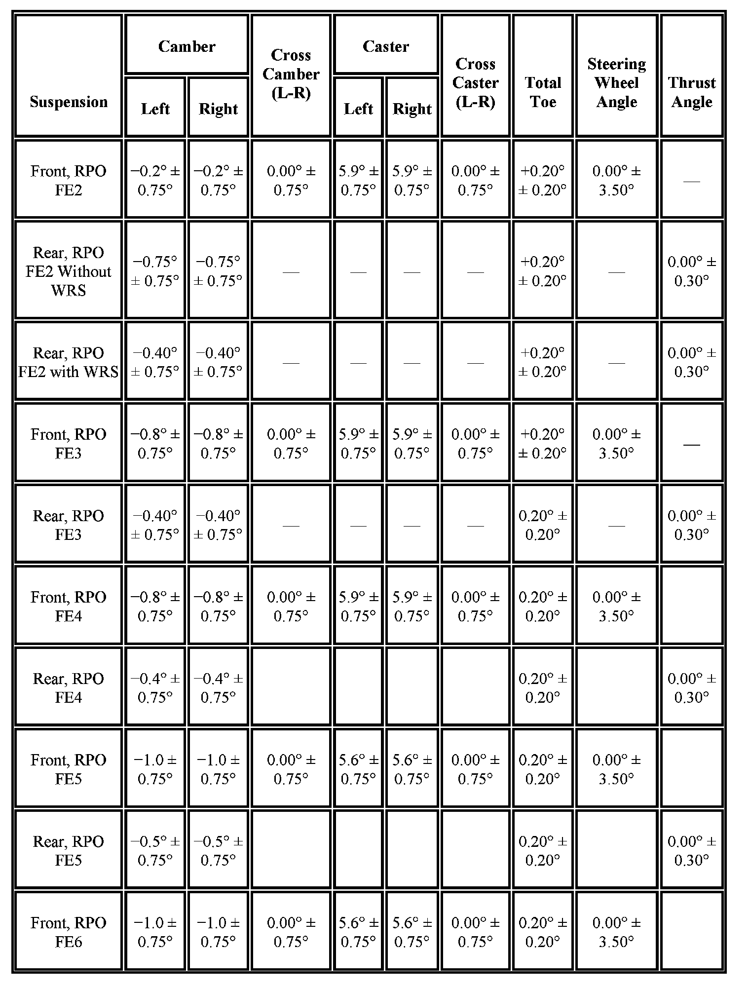 Wheel Alignment Specifications