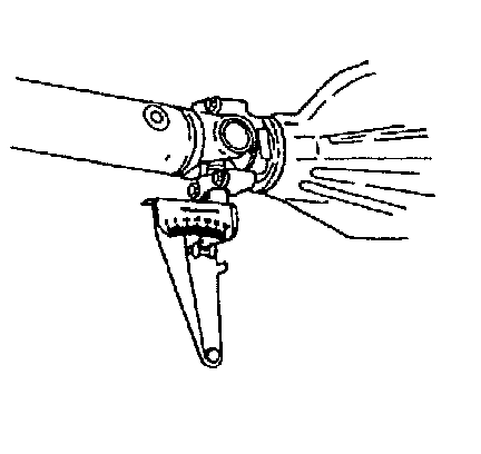 2. Install the J-23498-A - Driveshaft Inclinometer, or equivalent to the lower U-joint bearing cap of the rear-most yoke. This yoke may be part of a prop shaft, torque tube input shaft, or a drive axle pinion shaft. Measure and record the angle of the shaft.