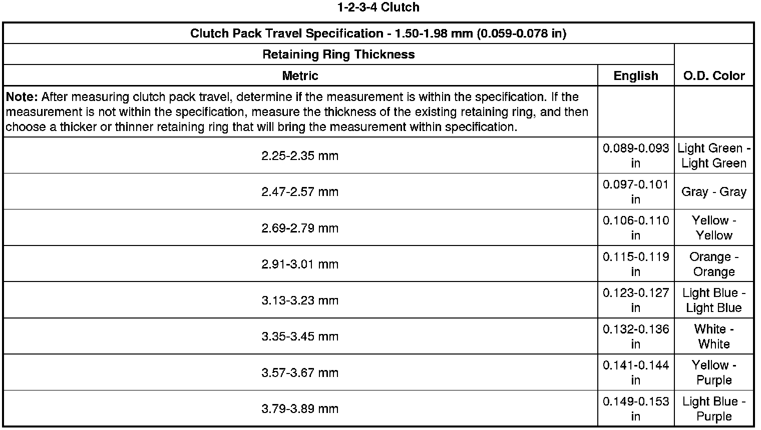 Clutch Backing Plate Retaining Ring Specifications (6L50)
