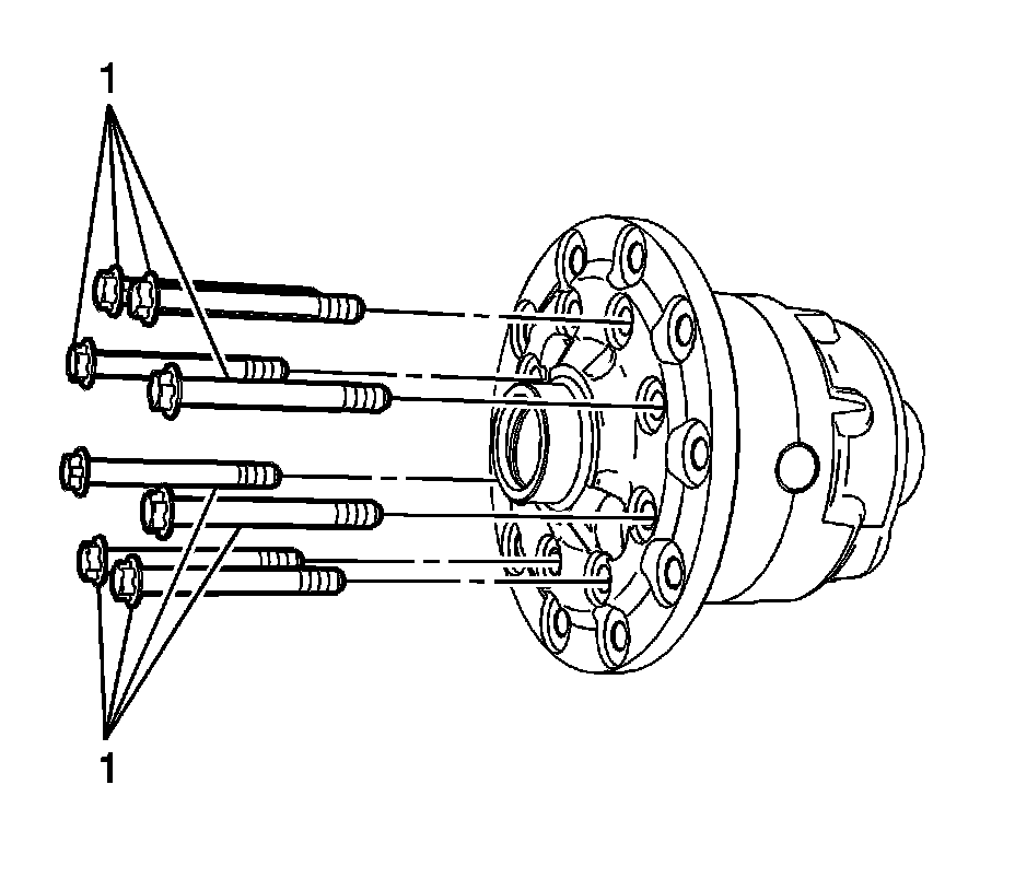 1. Remove the differential case bolts (1).