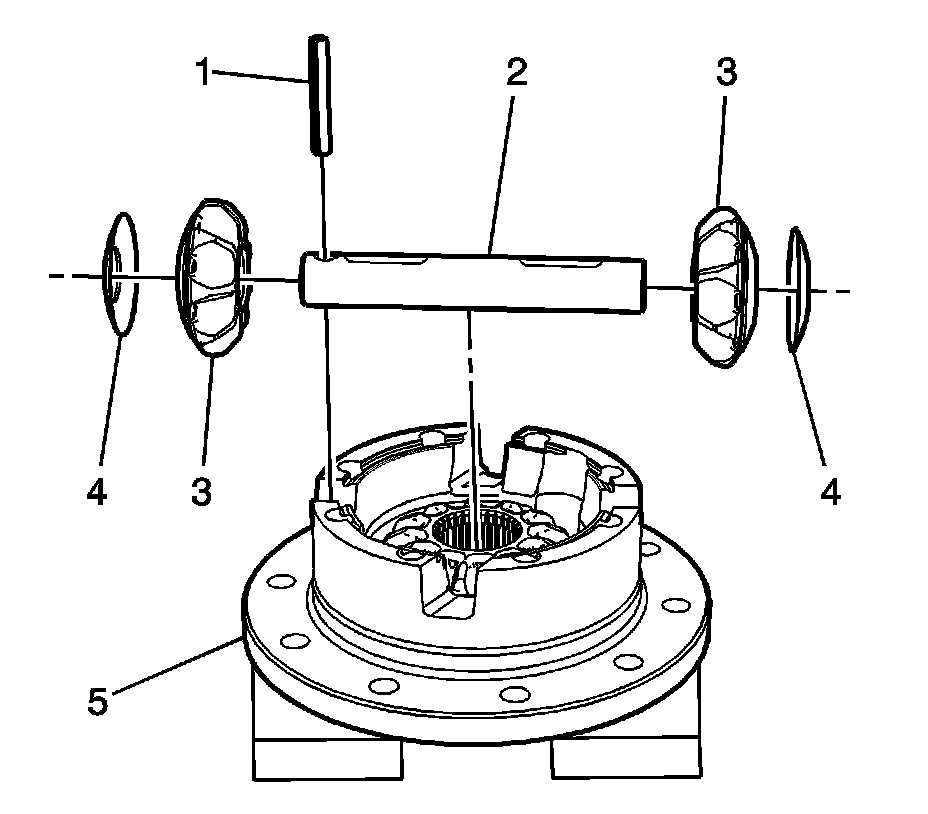4. Remove the lock pin (1), thrust washers (4), pinion gears (3) and the pinion shaft (2).