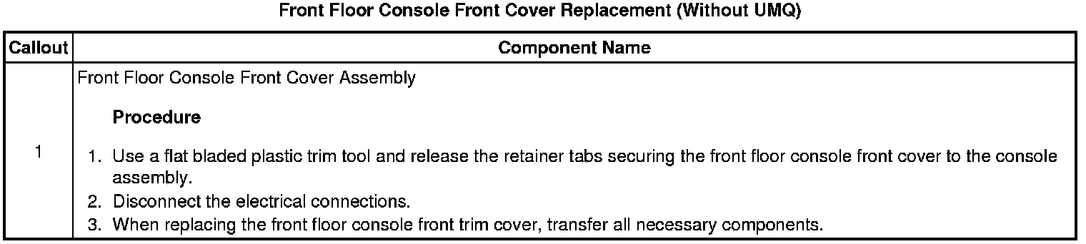 Front Floor Console Front Cover Replacement (Without UMQ)