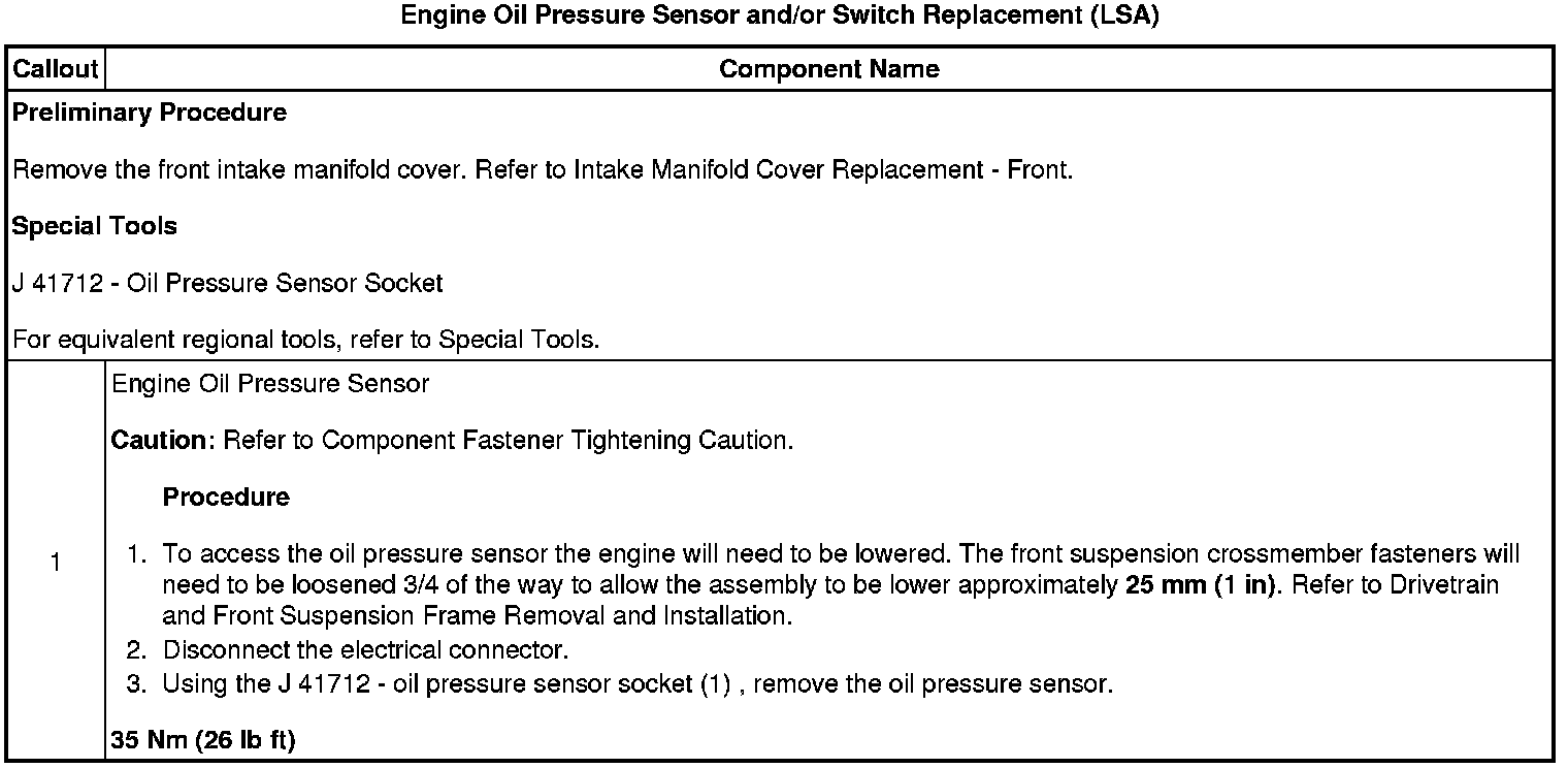 Engine Oil Pressure Sensor and/or Switch Replacement (LSA)