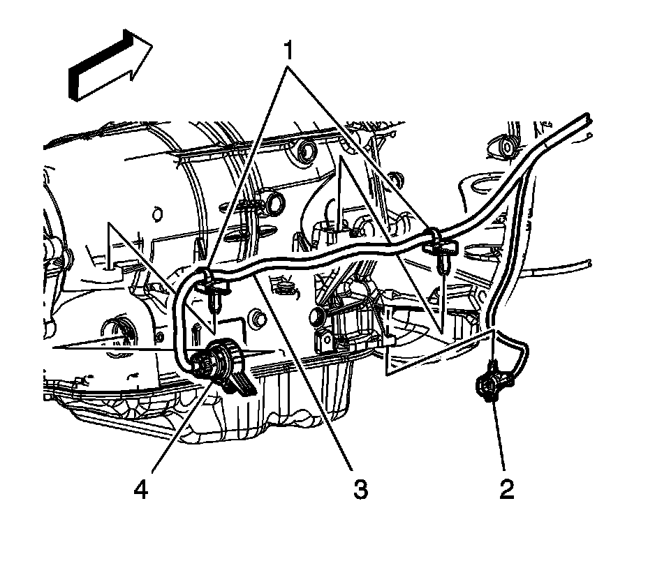 21. Disconnect the transmission vent hose (4) from the transmission vent pipe (1).