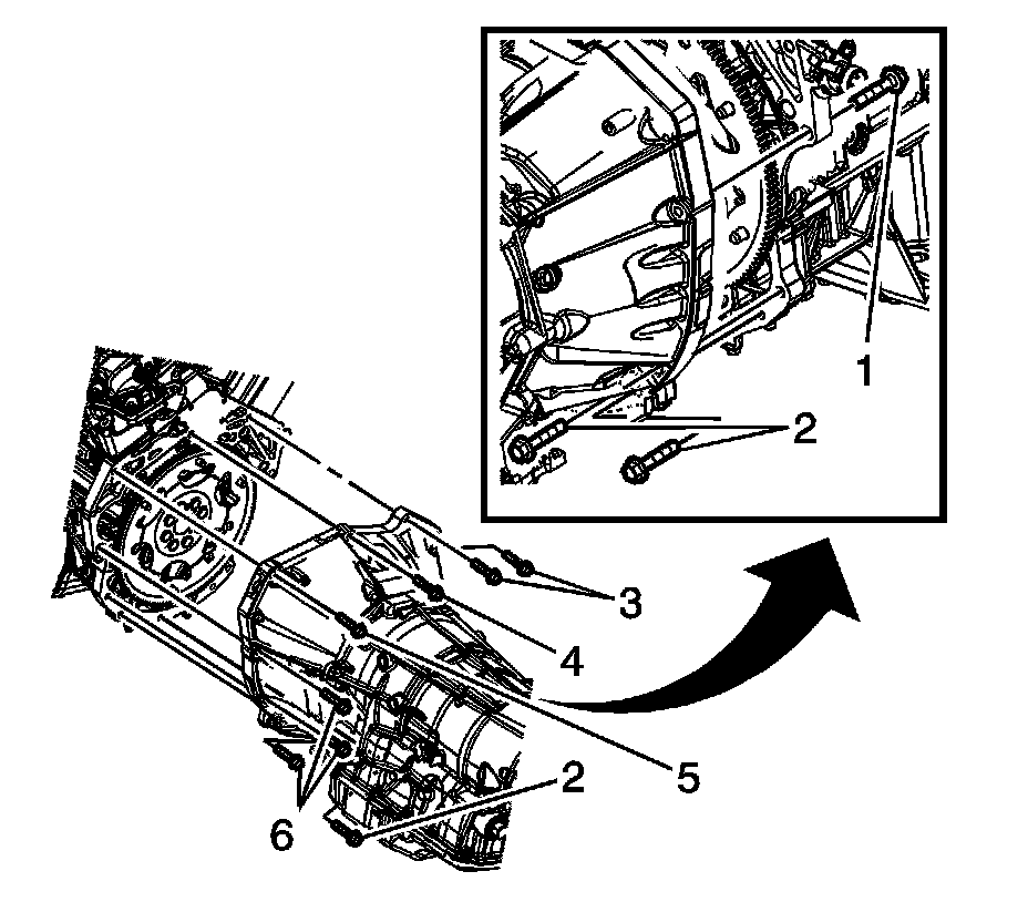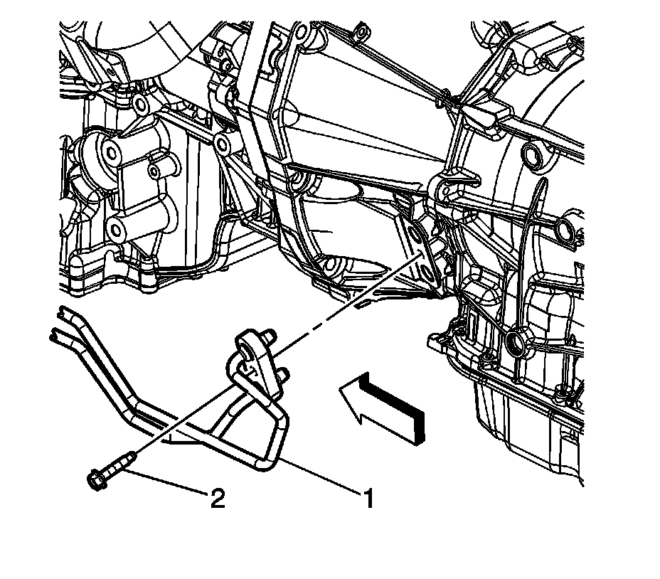 24. On V6 models, remove the heater inlet and outlet pipe to access the top transmission bolt. Refer to Heater Inlet And Outlet Pipe Replacement (LFX) .
