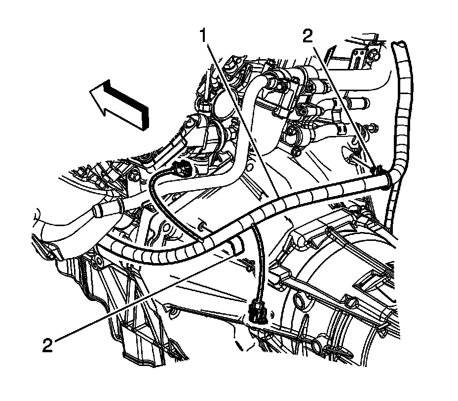 8. Remove the oxygen sensor wiring harness connector (2) from the transmission.