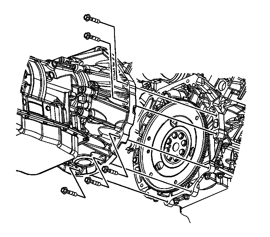 3. Install the transmission mounting bolts and tighten to 50 Nm (37 lb ft).