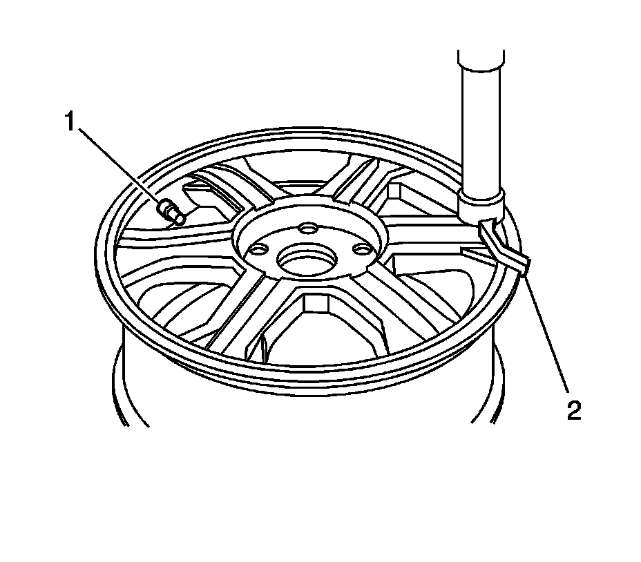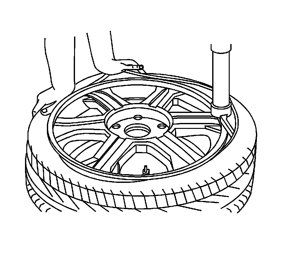 9. Apply mounting lubricant to the tire bead and the wheel rim. Refer to Adhesives, Fluids, Lubricants, and Sealers [1][2]Fluid Type Specifications.