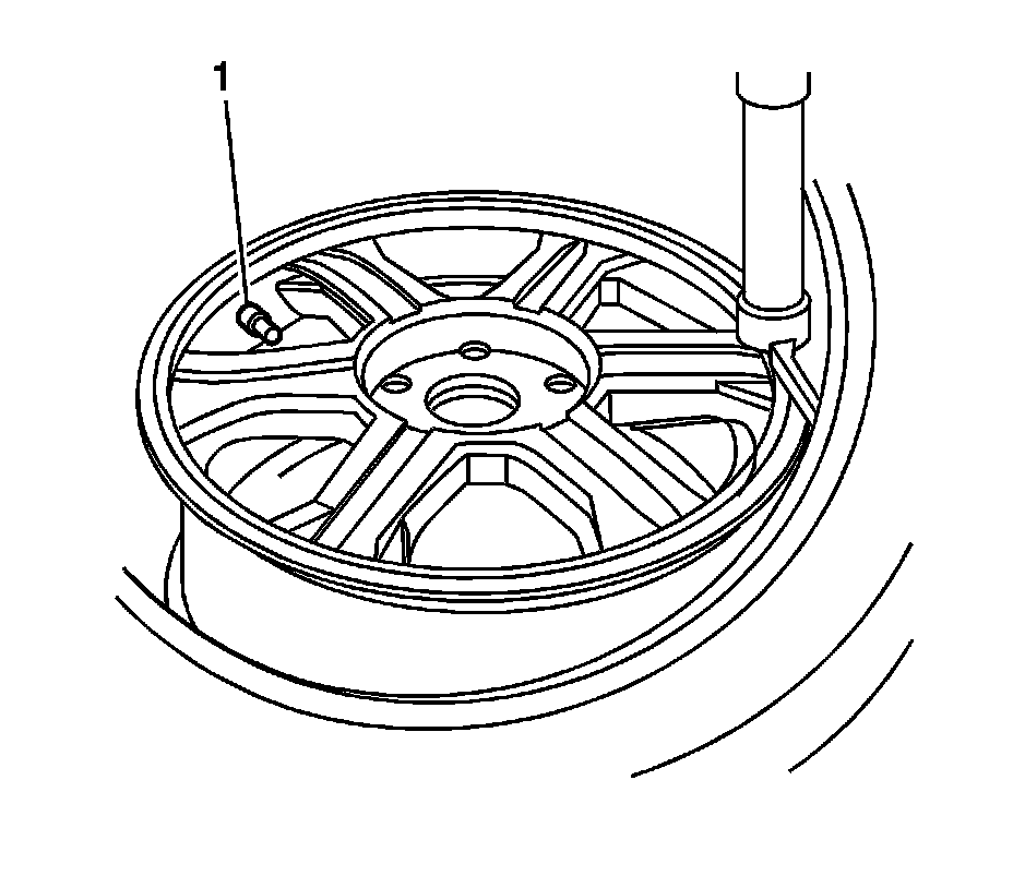 11. Using the tire machine, rotate the tire/wheel assembly clockwise when transferring the tire bead to the inside of the wheel rim. Ensure that the valve stem (1) is at the 7 o'clock position.