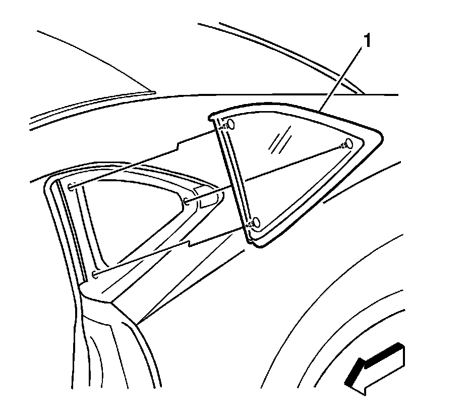 1. Install the quarter modular window into the opening. Refer to Adhesive Installation of Bodyside Stationary Windows Adhesive Installation of Bodyside Stationary Windows.