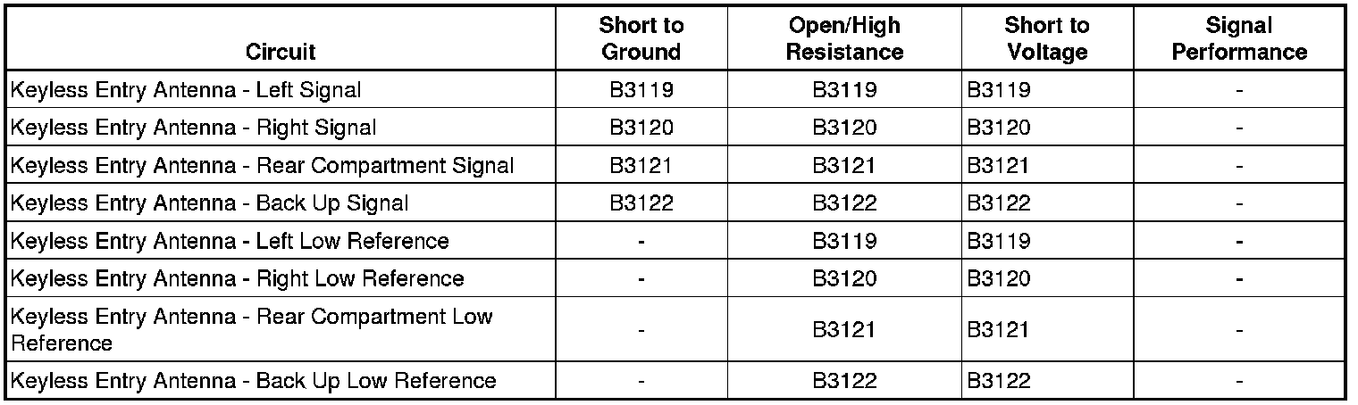 5. If all circuits test normal, test or replace the keyless entry antenna.