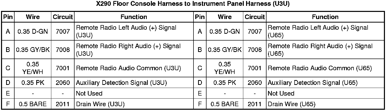 X290 Floor Console Harness to Instrument Panel Harness (U3U)