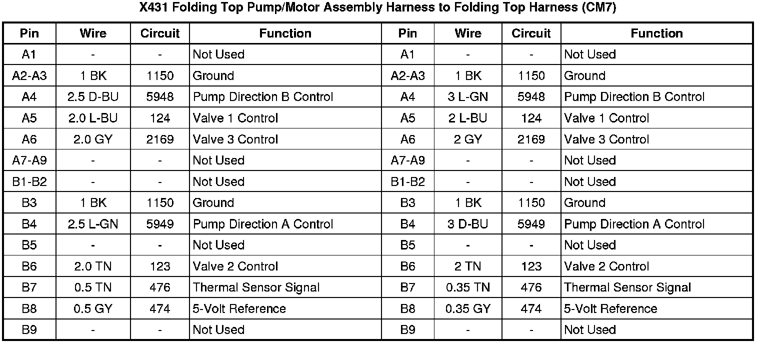 X431 Folding Top Pump/Motor Assembly Harness to Folding Top Harness (CM7)