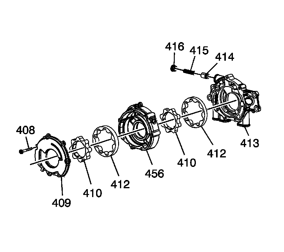 5. Remove the primary pump drive gear (410) and driven gear (412).