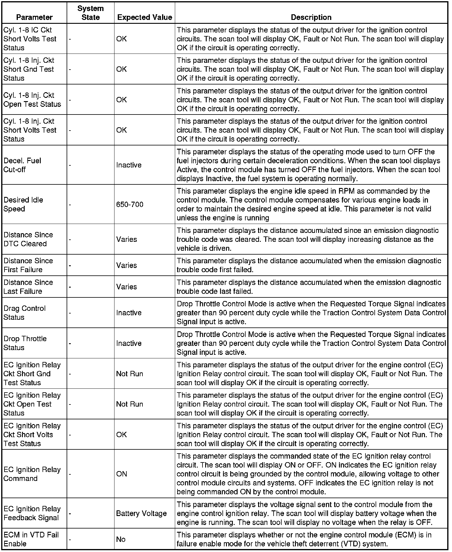 The Engine Control Module Scan Tool Data List contains all engine-related parameters that are available on the scan tool. The list is arranged in alphabetical order. A given parameter may appear in any one of the data lists, and in some cases may appear more than once, or in more than one data list in order to group certain related parameters together.