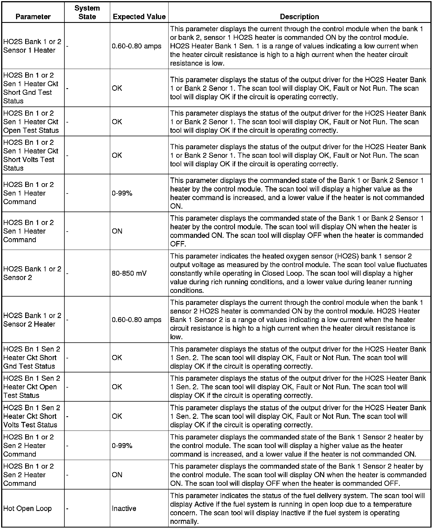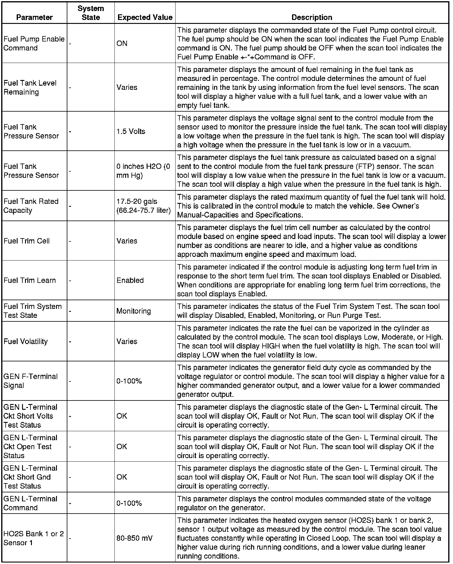 The scan tool values from a properly running engine may be used for comparison with the engine you are diagnosing. The engine scan tool data list represents values that would be seen on a normally running engine.