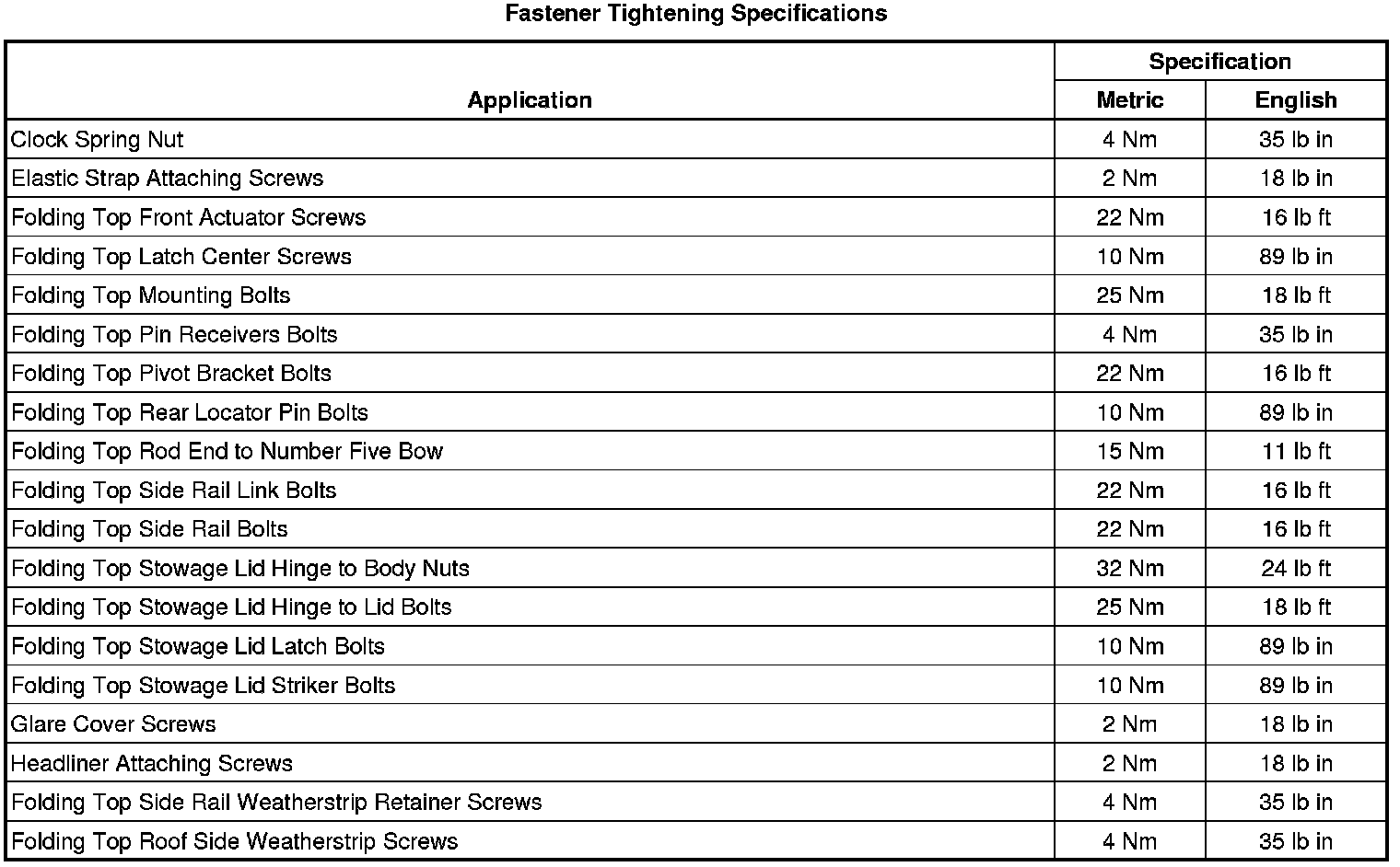 Fastener Tightening Specifications