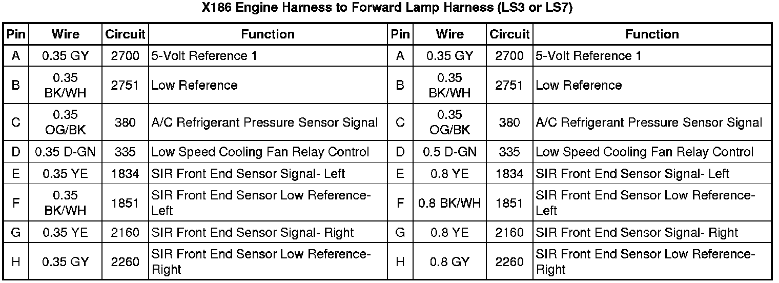 X186 Engine Harness to Forward Lamp Harness (LS3 or LS7)