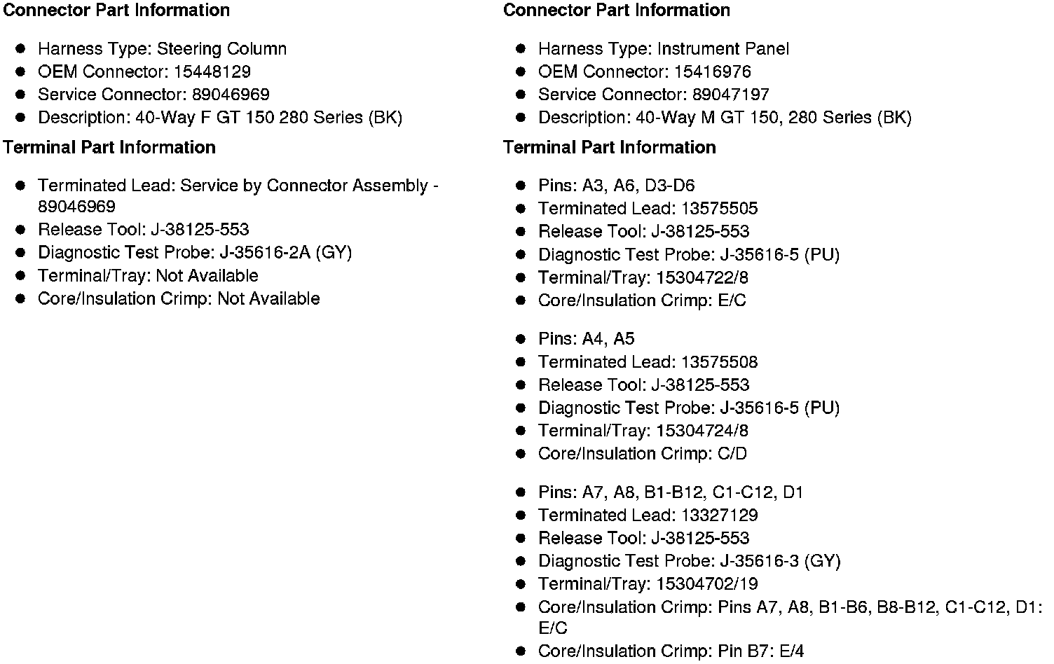 X231 Steering Column Harness to Instrument Panel Harness