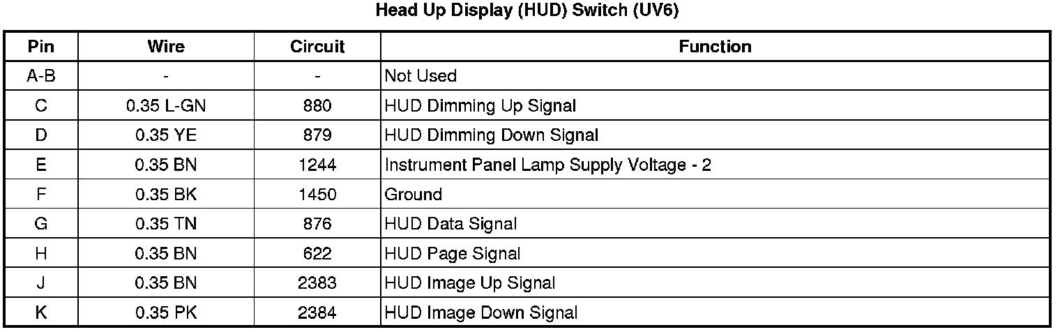 Head Up Display (HUD) Switch (UV6)