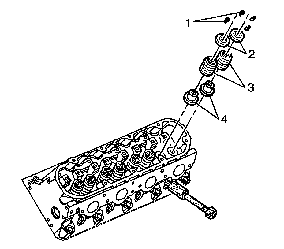 10. Remove the valve spring cap (2).