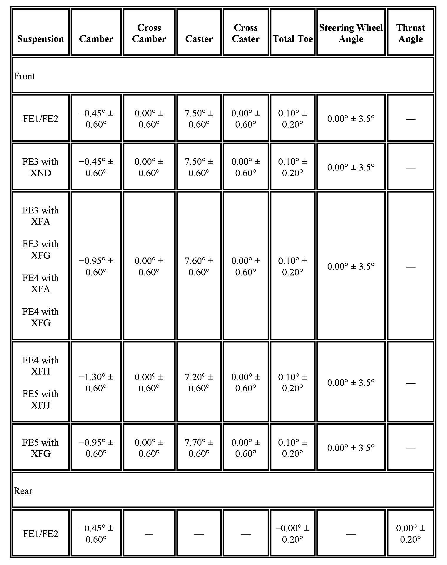 Wheel Alignment Specifications