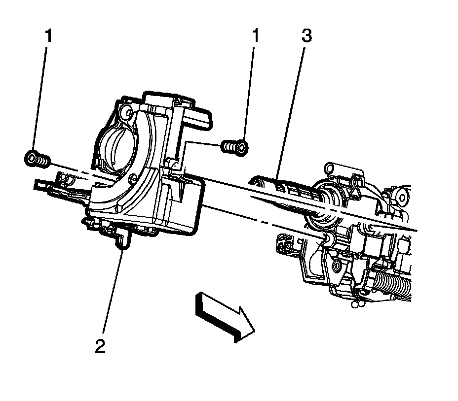 2. Remove the turn signal and headlamp dimmer switch assembly. Refer toTurn Signal Multifunction Switch Replacement Turn Signal Multifunction Switch Replacement.
