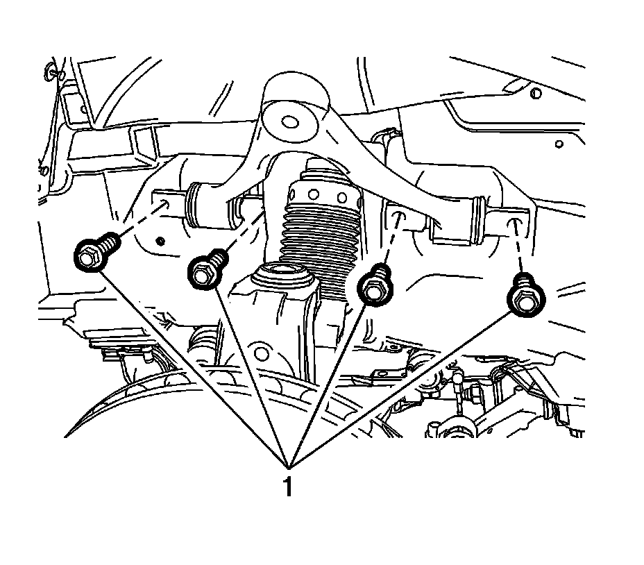 3. Install the upper control arm bolts (1) and tighten to 65 Nm (48 lb ft).