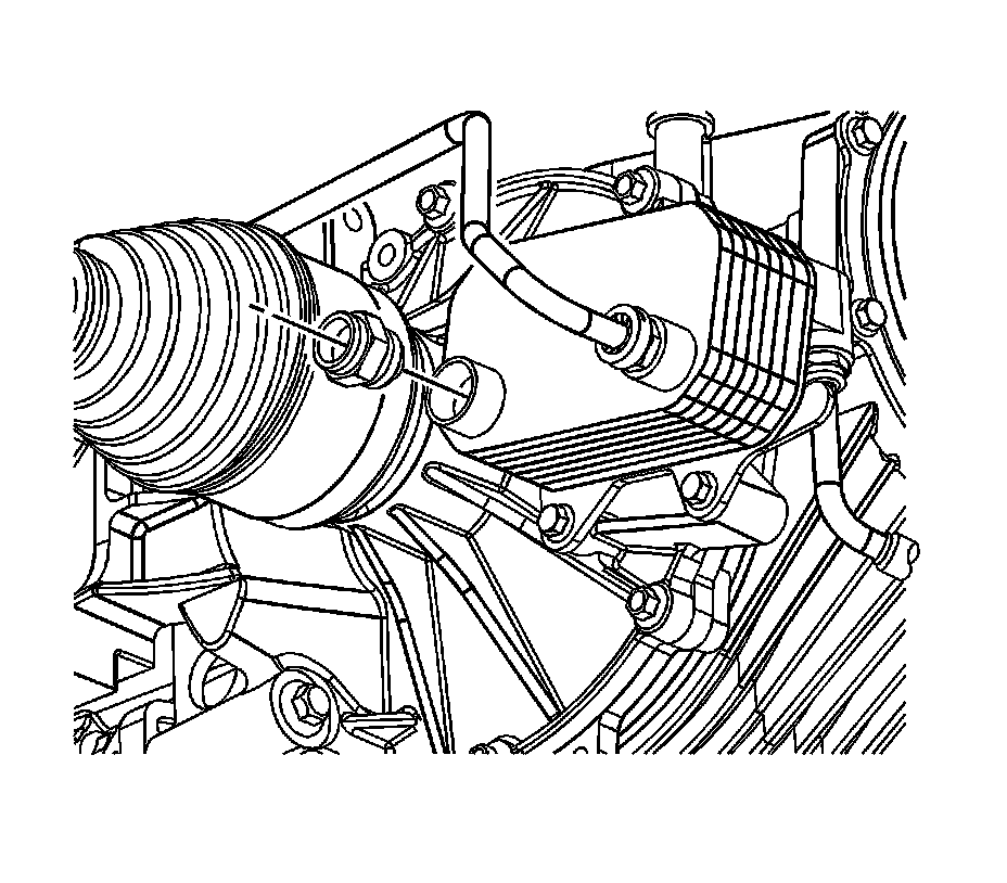 4. Disconnect the differential cooler line from the differential cooler. Refer to Differential Cooler Hose/Pipe Quick Connect Fitting Differential Cooler Hose/Pipe Quick Connect Fitting.
