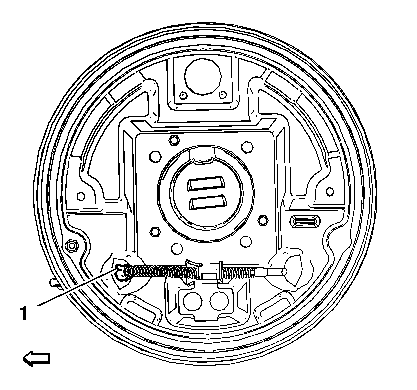 3. Secure the rear park brake cable end fitting (1) to the brake backing plate.