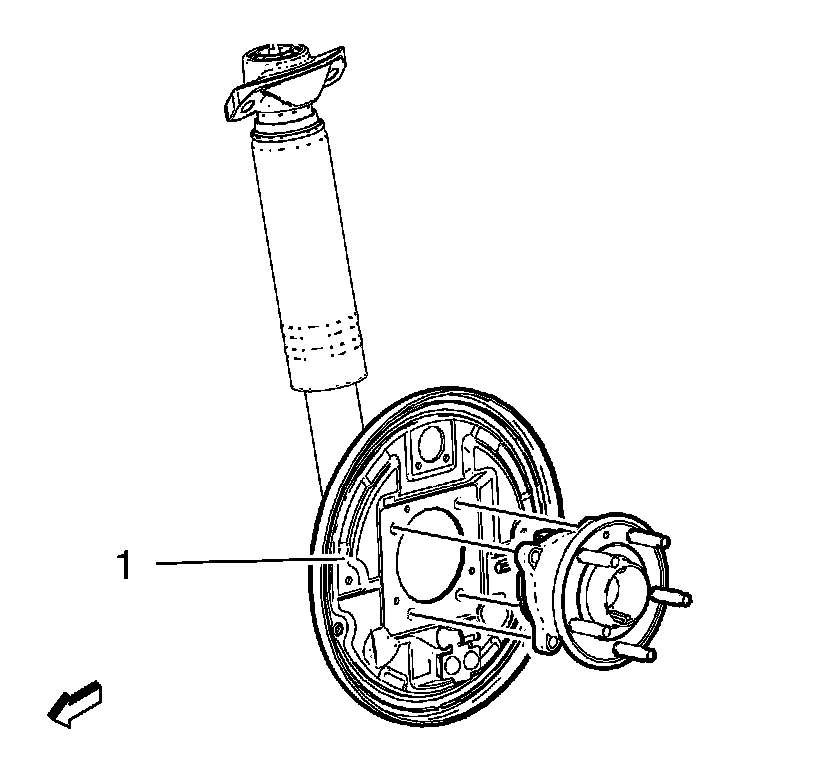 7. Remove the wheel bearing/hub assembly. Refer to Rear Wheel Bearing and Hub Replacement (Drum Brake) Rear Wheel Bearing and Hub Replacement (Drum Brake)Rear Wheel Bearing and Hub Replacement (Disc Brake) Rear Wheel Bearing and Hub Replacement (Disc Brake)