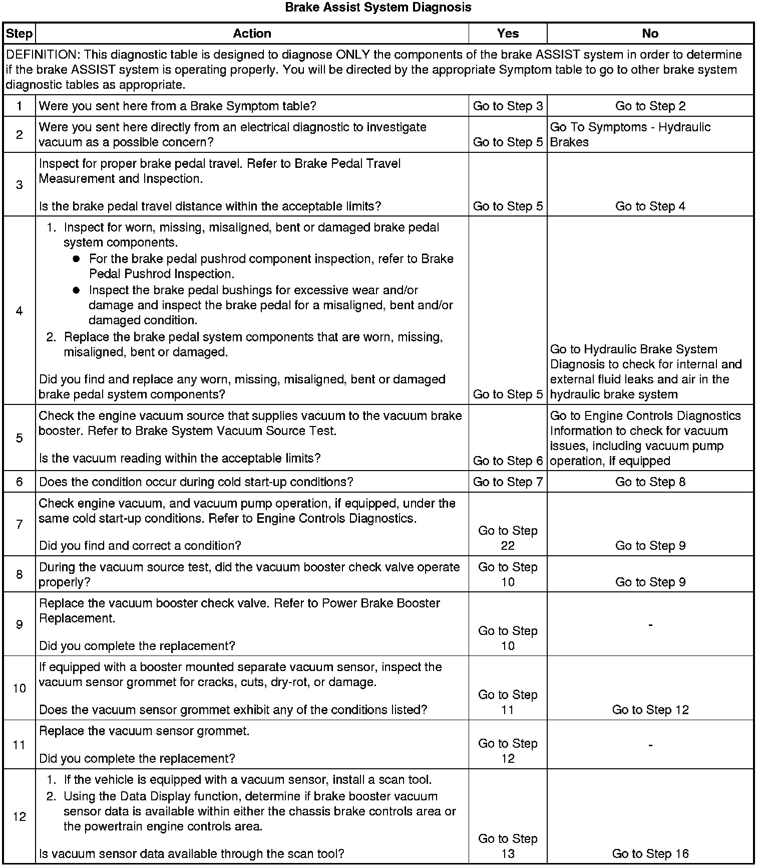 Brake Assist System Diagnosis