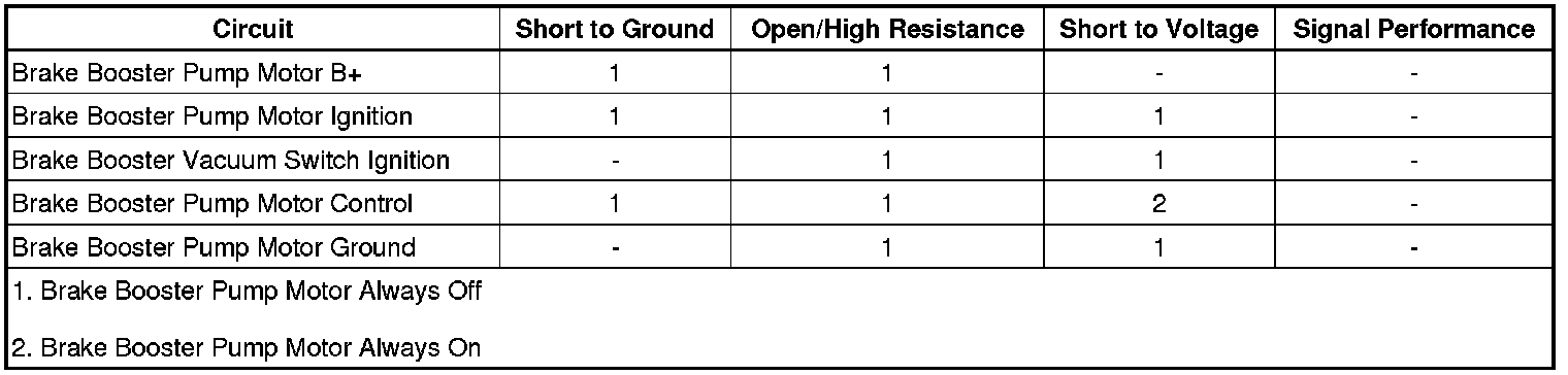 1. Ignition OFF, disconnect the harness connector at the M9 Brake Booster Pump Motor. Install a 30 A fused jumper wire between the B+ circuit terminal 5 and B+. Install a 7.5 A fused jumper wire between the ignition circuit terminal 2 and B+. Install a jumper wire between the ground circuit terminal 1 and ground.