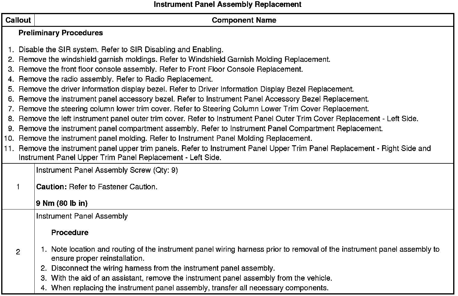 Instrument Panel Assembly Replacement
