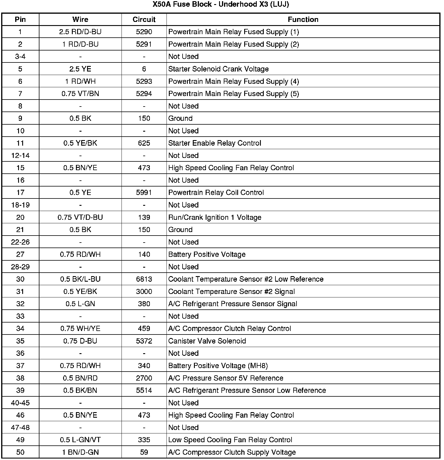 X50A Fuse Block - Underhood X3
