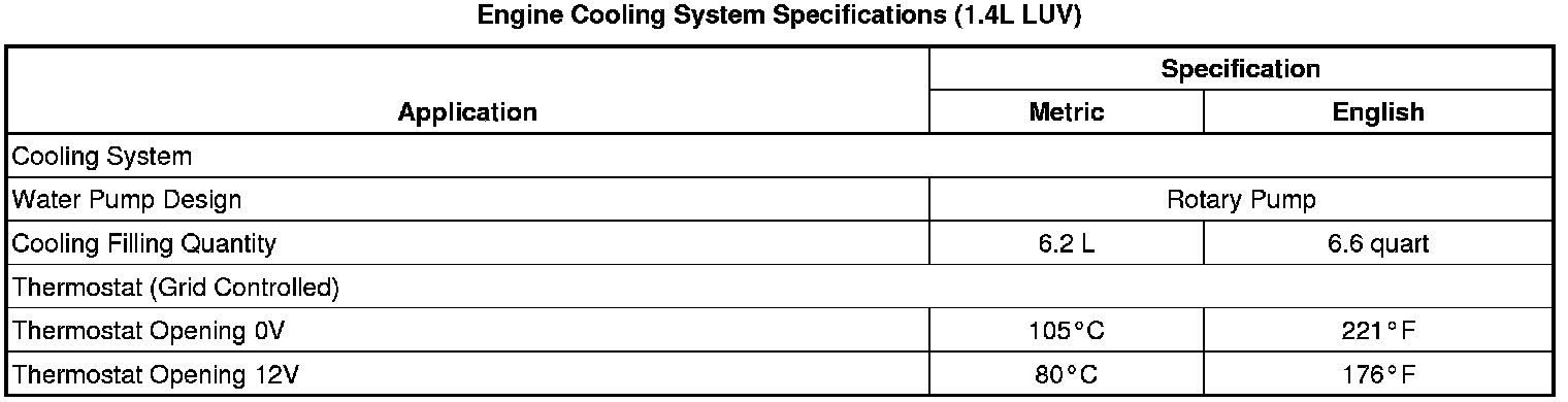 Specifications (1.4L LUV)