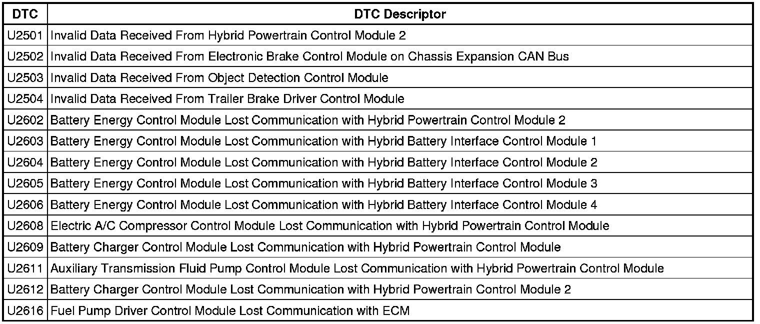 This list includes all Data Communications related U-code DTCs in alphanumeric order with descriptors for all devices. Not all DTCs listed will be applicable to all vehicles.