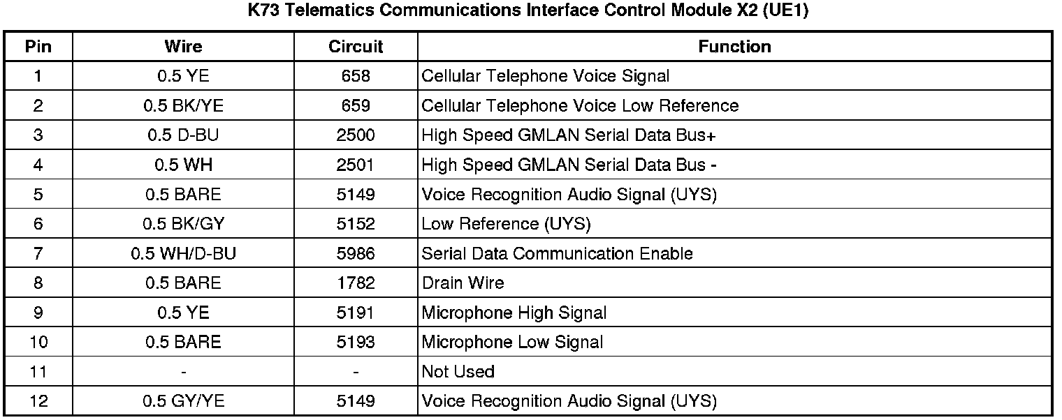 Telematics Communications Interface Control Module X2 (UE1)